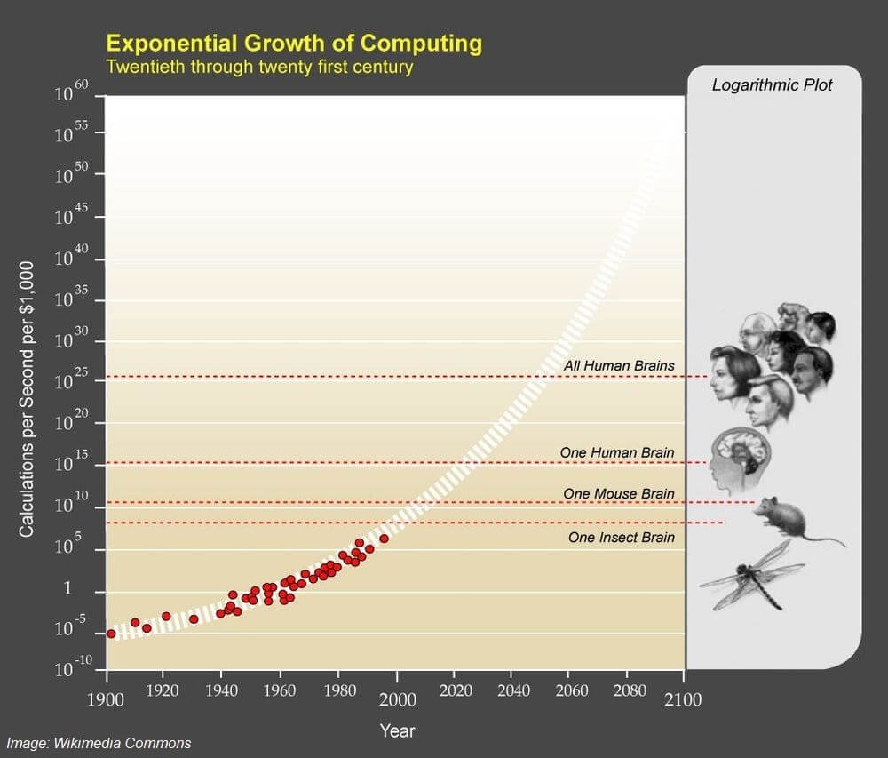 Technology is growing exponentially.; that means it’s only going faster and faster, doubling continuously. So we won’t experience 100 years of progress in the 21st century: at today’s rate, its progress is estimated to be more than 20,000 years ahead!